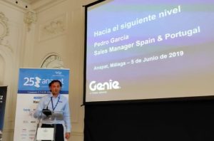 Como novedad, los fabricantes con patrocinio Premium y Oro han podido exponer sus máquinas en el recinto del hotel en el área donde se situaba el cóctel y la cena de celebración. Hemos podido ver máquinas como el elevador sobre masitas Star 8S AC de Haulotte con 8 m de altura de trabajo. De gente pudimos ver la nueva plataforma de tijera Genie GS-1330mc con una capacidad de carga de 227 kg para llevar a dos personas en la plataforma, un peso de máquina de tan solo 885 kg e incorpora el sistema de control Genie Smart Link™. Con una altura máxima de plataforma de 3,9 m y una altura máxima de trabajo de 5,9 m. Y Palfinger.