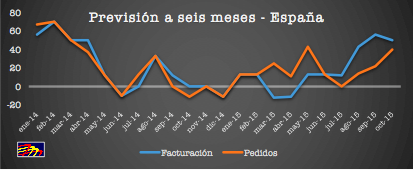 Si se analizan las previsiones a seis meses, ya sea por países o por sectores la tendencia es igual; tras la caída registrada hasta finales de 2014, momento en el que se tocó fondo, durante este año se ha ido recuperando la confianza aunque a un ritmo menor que el observado durante los meses de desconfianza.