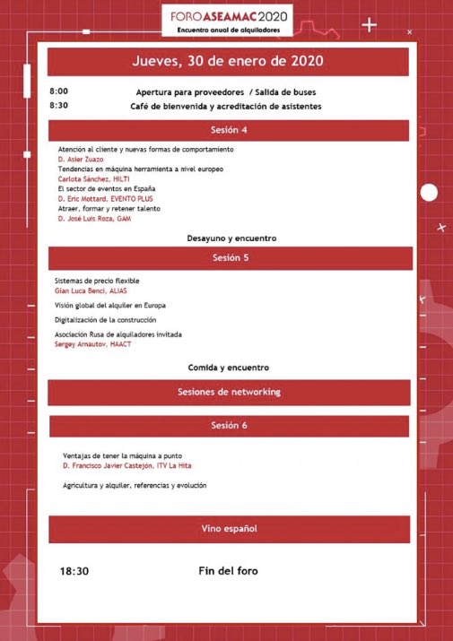 El Foro ASEAMAC 2020 mantiene las características del evento tradicional de la Asociación del alquiler de maquinaria y equipos, pero busca seguir sorprendiendo con las conferencias y mesas redondas, las sesiones de networking, las opciones de patrocinio y la organización del evento.