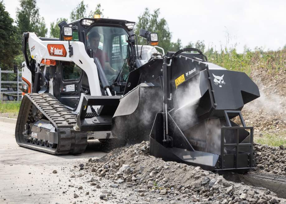 En SaMoTer 2023, la cargadora de orugas T86 está equipada con un nuevo implemento de fresadora. Este último forma parte de una nueva familia de tres modelos de fresadoras de alto rendimiento que pueden funcionar con un caudal auxiliar de hasta 159 l/min. Están disponibles en anchuras de 100, 120 y 150 cm, y se han diseñado para funcionar con la nueva tecnología Super Flow.