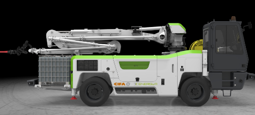 Orgulloso de la experiencia adquirida en la tecnología híbrida-eléctrica, CIFA presenta una máquina para el spritz beton perteneciente a la serie ENERGYA. (Nuevo producto presentado por primera vez en BAUMA 2016