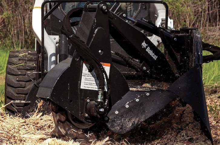 Los destoconadores Bobcat son fáciles de usar, estos se conectan en la parte frontal de la cargadora de modo simple permitiendo triturar restos de árboles sin necesidad de reposicionar la cargadora, gracias al arco del cilindro de giro. El diseño exclusivo de la válvula controla la velocidad de circuito de giro para prevenir que el disco de corte se cale durante el ciclo de corte. Este implemento puede moler desde 280 mm sobre la superficie hasta 280 mm por debajo de ella. Su grupo de trabajo está montado en un ángulo de 90 grados para permitir una excelente visibilidad, dando al operador la misma visión amplia que con cualquier amoladora de tracción trasera. Distintas alturas de corte permiten acceso a gran variedad de tamaños de tocones. Existen 3 modelos de destoconadores Bobcat; el SG30 para cargadoras sin alto caudal, el SG60 puede trabajar sin y con alto caudal, y el SGX60 únicamente para máquinas de alto caudal.