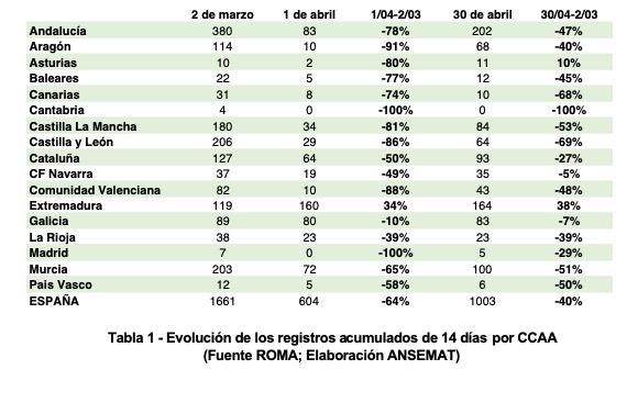 Las cifras del registro de maquinaria no son buenas y así se observa en el informe de abril del ROMA. No son buenas en términos absolutos, y menos aún si se comparan con las cifras de 2019. Esto es algo que era de esperar en la terrible crisis que se está viviendo. Pero es necesario buscar señales positivas en el mercado que nos animen a seguir trabajando como se está haciendo durante estas ocho semanas, y conseguir vencer con el esfuerzo común de todos al virus que ha desplomado el mercado.