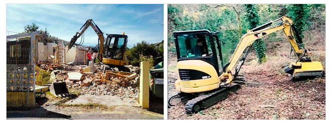 Además somos muy versátiles. Como he comentado anteriormente, somos capaces de hacer una gran cantidad de trabajos diferentes. Disponemos de una grapa, un martillo y una desbrozadora para las miniexcavadoras, que nos permiten realizar tareas específicas y muy necesarias, haciendo posible el acometer muchas obras de principio a fin.
