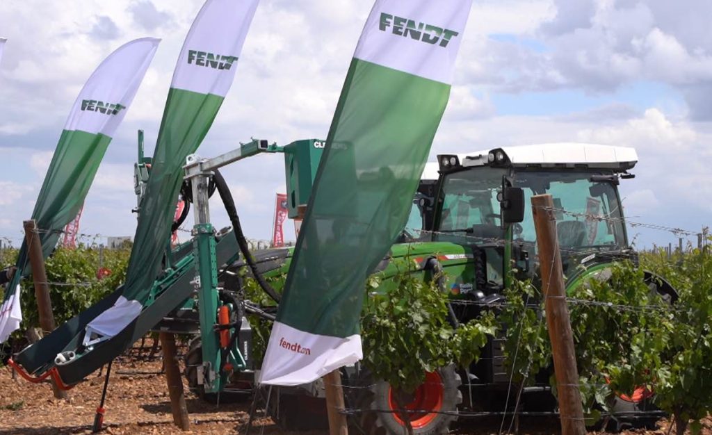 Pero no todo se coció en la parcela de recolección de Fendt, en una zona vitivinícola en España como Rueda, Fendt mostró en el área de viña 2 unidades Fendt 210 P Vario.