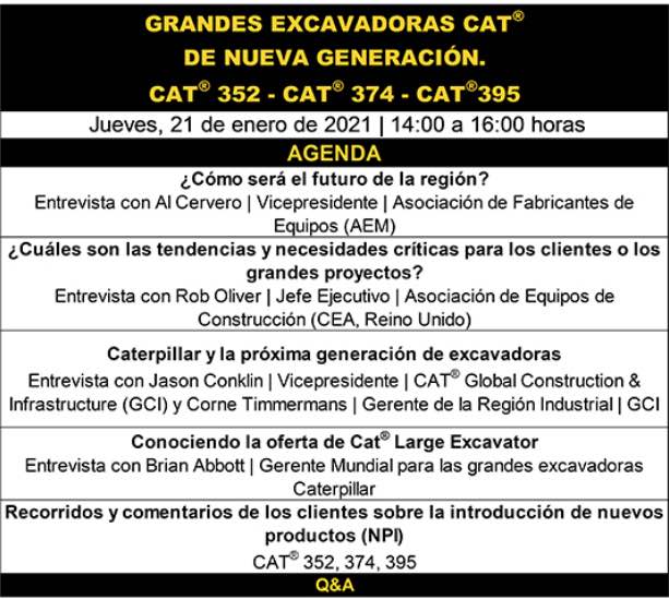 Este evento virtual tendrá lugar el 21 de enero a las 14 horas y representa una oportunidad única que permitirá además interactuar con expertos de la industria, profesionales de Cat y clientes.