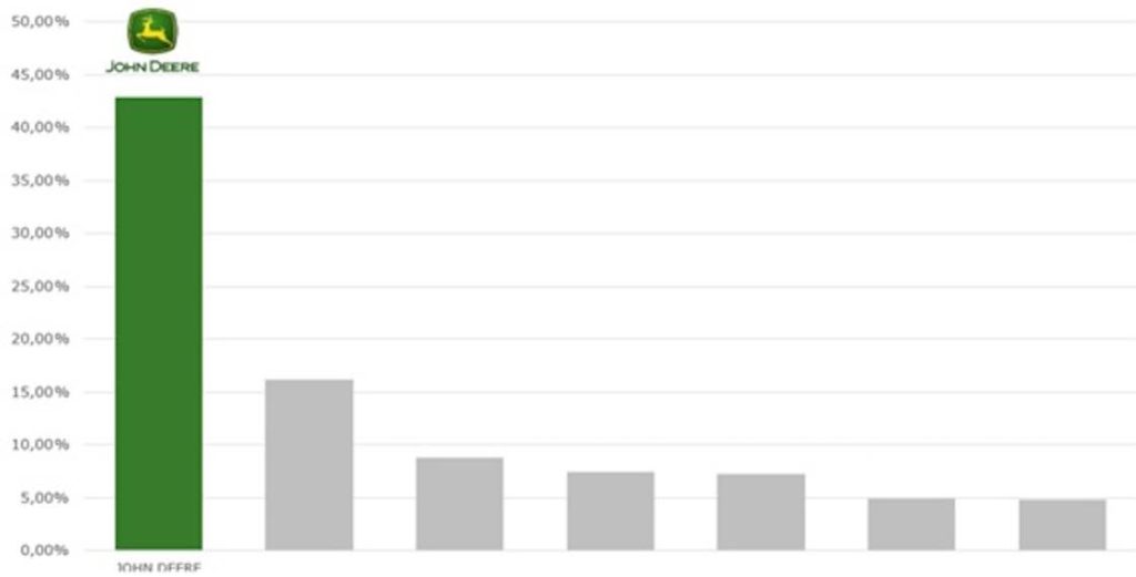 - Se trata de una penetración de mercado histórica que refuerza la primera posición de John Deere en el segmento de tractores de más de 150 CV.