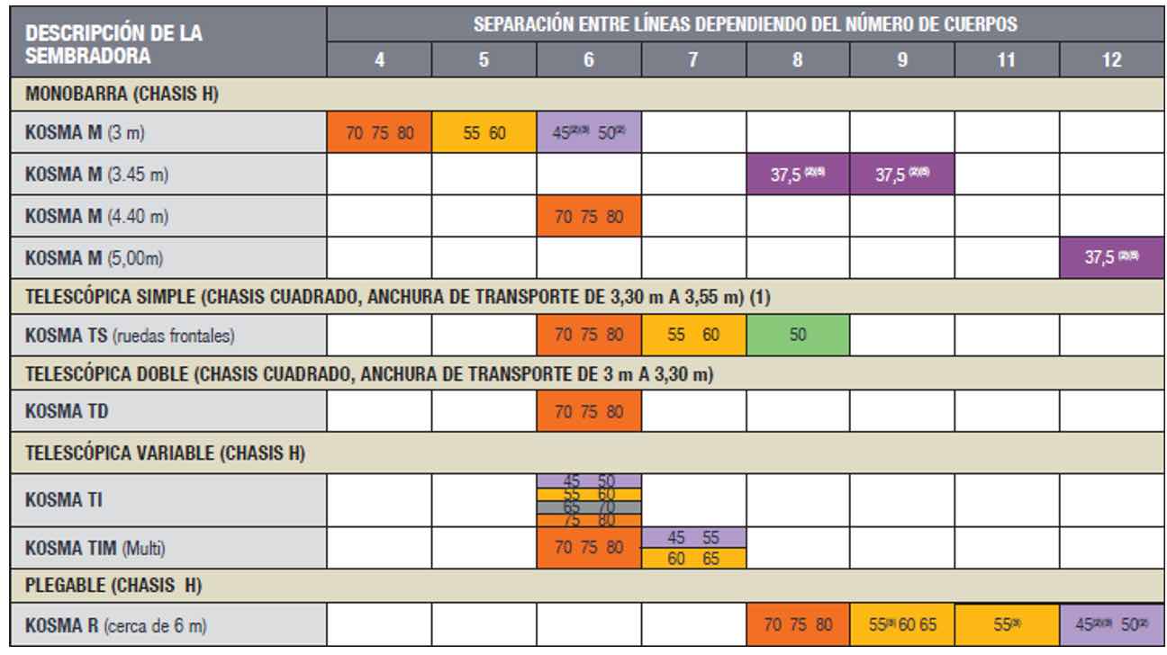 Modelos con posibilidad de variar la anchura entre líneas de siembra, con una sola máquina puede adaptarse a la siembra de soja, colza, remolacha, judía, girasol y maíz. Ideal para empresas de servicios y explotaciones con una rotación de cultivos extensa.