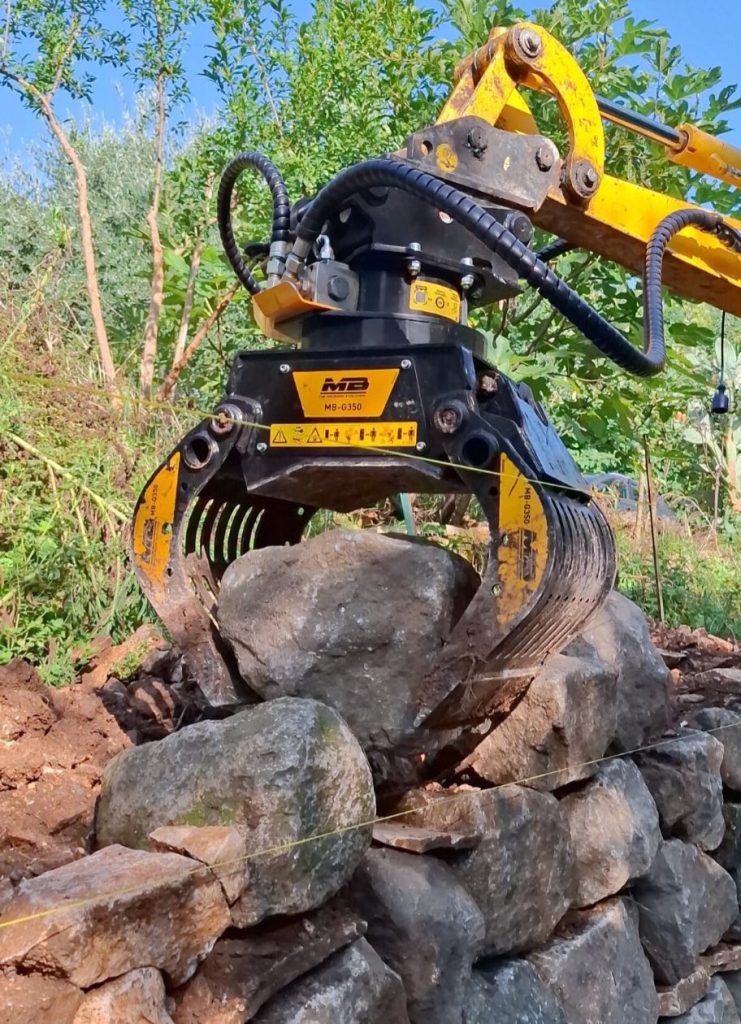 La construcción de muros de piedra seca, una técnica ancestral con profundas raíces culturales, encuentra en las pinzas seleccionadoras MB Crusher un aliado moderno que facilita su realización con precisión y eficiencia.