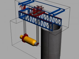 Mammoet a medida diseñado el equipo de arrastre y elevación para mover la vasija del reactor desde el edificio del reactor. El vaso pesa 2.000 toneladas, tiene 26 metros de altura y tiene un diámetro de 7,6 metros. Se levanta de su posición anterior en el edificio del reactor, se movió y luego se colocó en un bastidor de soporte hecho a medida.
