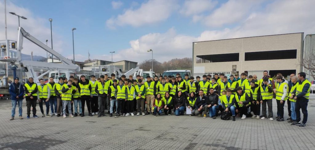 Dependiendo de la especialidad de los alumnos, se suman a la sesión compañeros del Departamento Técnico o del Servicio Postventa, quienes profundizan en aspectos específicos relacionados con la tecnología aplicada en las plataformas. Tras la presentación, los estudiantes se dividen en grupos pequeños para realizar un recorrido guiado por las instalaciones productivas, acompañados por Fabio Pagliero o Mauro Rinaudo, quienes explican en detalle las operaciones en planta.