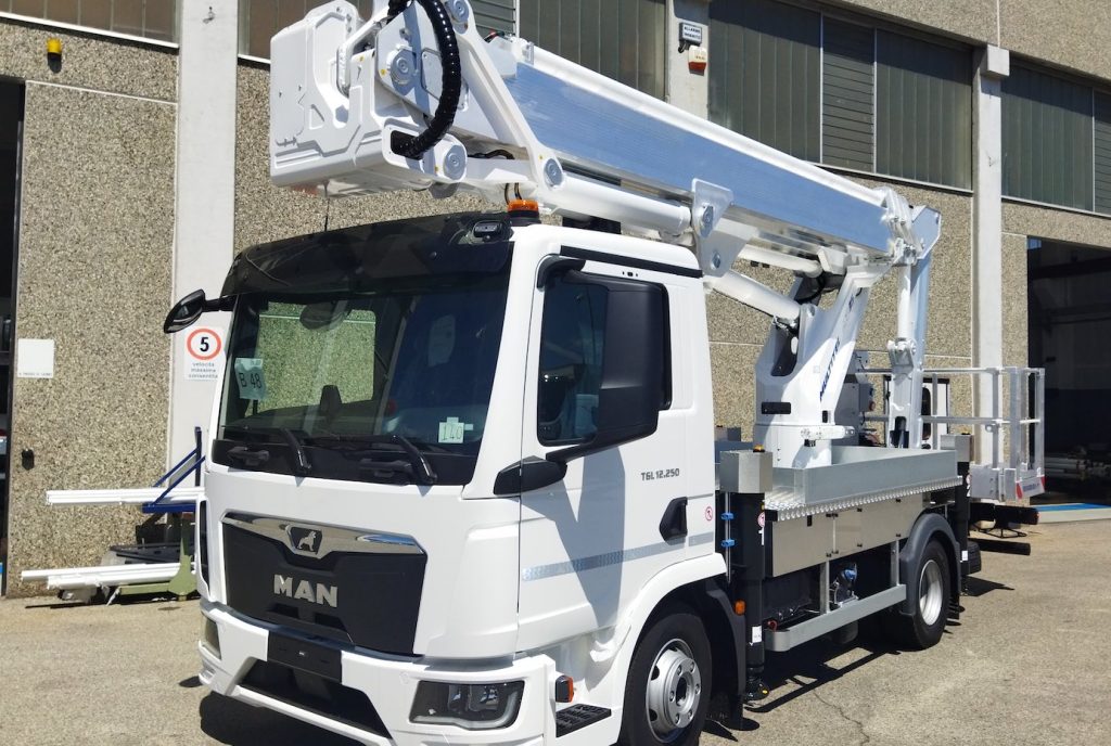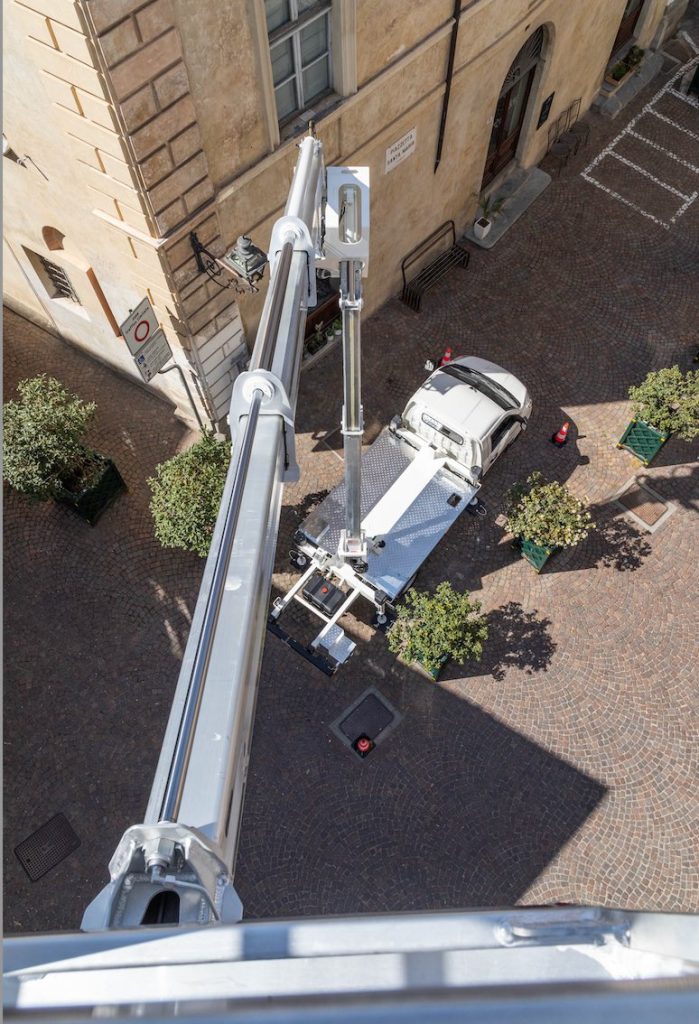 No podía faltar la plataforma aérea articulada MXE 170 en Piaggio Porter NP6 Long Range, con alimentación de gas LPG y gasolina. Altura máxima de trabajo de 16.90 m, alcance horizontal máximo de 6 m, UP&OVER de 6,8 m y capacidad de la plataforma de 250 kg (2 personas). Diseñada para su uso en las calles estrechas de ciudades o centros históricos y, en general, en áreas de trabajo con espacio limitado. El peso es bajo con un GVW de 2,800 kg, lo que le permite moverse sobre superficies delicadas, la longitud es reducida (5,850 mm), mientras que la estabilización es de solo 1,800 mm de impresión en el suelo. La compacidad general se combina con una altura reducida (2.550 mm), lo que lo convierte en una de las plataformas más compactas en el Piaggio NP6. La elección de LPG, además de garantizar ahorros de costos y menos contaminación, permite la circulación urbana a todas horas del día, sin las restricciones de los bloqueos de tráfico.