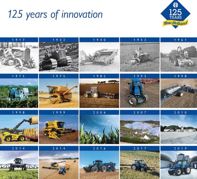 Carlo Lambro, Presidente de la marca New Holland Agriculture, afirmó: “New Holland tiene una valiosa herencia que comenzó en un pequeño pueblo de Pensilvania y se ha convertido en una marca global con presencia en 170 países. Es una historia marcada por importantes innovaciones que han transformado la agricultura. Reúne un legado único de marcas como Ford, Fiat, Braud y Claeys. Y, lo más importante, es una historia marcada por las personas: nuestros clientes, nuestros concesionarios, nuestros empleados, día tras día y año tras año. Juntos nos enfrentamos a los muchos retos que plantea la agricultura, ayudando a los agricultores a hacer su trabajo de manera eficiente y rentable y sacar el máximo partido a su explotación”.