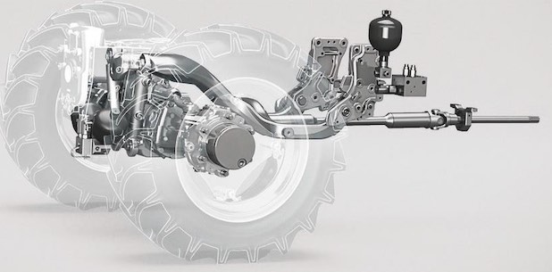Nuevo eje delantero suspendido Terraglide montado en la serie tractores T4 Specialty, aportando una mayor productividad en el día a día, seguridad en transporte y comodidad excepcional. Este eje delantero suspendido se ha desarrollado para clientes que trabajen en terrenos difíciles y colinas, clientes o empresas de servicios que se dediquen a pulverizar productos fitosanitarios y quieran la mayor comodidad de conducción, ya que es probable que realicen más de 1000 horas de trabajo al año. Si a todo esto le sumamos los nuevos neumáticos Pneutrac, que consiguen unificar en un mismo producto lo mejor de los neumáticos tradicionales y de las orugas, el resultado es un conjunto de trabajo sorprendente