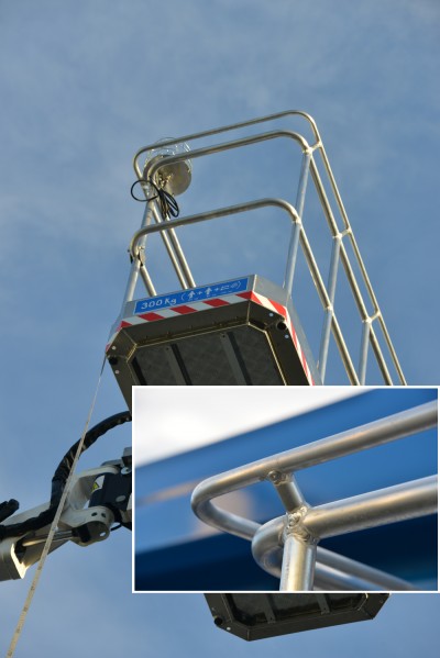 • Protección para las manos del operador anti-crujido 2013, el pasamanos de la cesta presenta una doble barra de protección del operador y pasaje de manos durante maniobras aéreas.