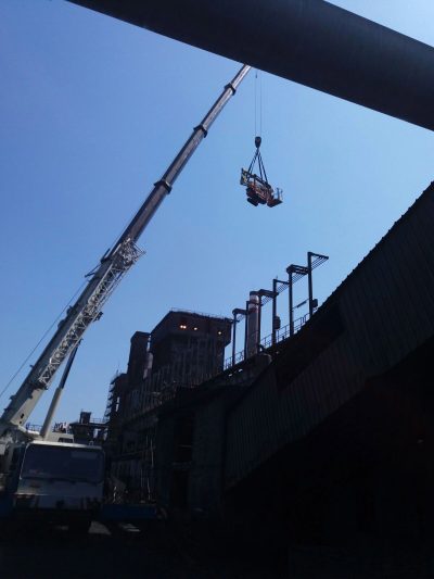 Una estructura industrial de esta complejidad, requiere un mantenimiento continuo y cuidadoso. Y este es el caso de la zona por donde pasan los trenes, en la que ha trabajado una plataforma de seguimiento de JLG, la X20J Plus (20,05 m de altura de trabajo), rentada por Jofemesa que, además de en Valencia, tiene su sede en Avilés. No ha sido fácil – por razones de espacio – el transporte de la máquina a la obra, que ha necesitado de una grúa para su levantamiento y posicionamiento.