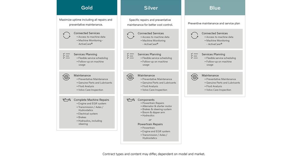 - Volvo Construction Equipment introduce sus Contratos de servicio Volvo, disponibles en tres niveles: Gold, Silver y Blue.