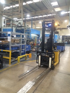 El distribuidor de productos Yale suministró también una solución eficaz contra el elevado índice sonoro de la planta y para ayudar a los operarios que apenas podían percibir las alarmas sonoras de las carretillas que circulaban por la fábrica.